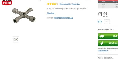 A multi point services/gas box key, so that you can gain access to outside services boxes. £1.99 from Screwfix.