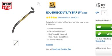 I use two 15 inch utility bars from Screwfix. They are fit neatly into the kit bag and work really well at lifting heavy drainage covers. I have a heavy duty plastic bag to wrap them up in as they touch drains regularly. £5.89 each from Screwfix.