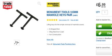 A pair of drain keys for lifting lighter drain covers. I often just use my crowbars, but they are good too. £6.99 per pair - Screwfix.
