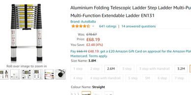 Telescopic ladders. I got mine from Amazon (see above) They work well and aren’t excessively heavy. They also have EN standards – so I assume are safe to use – make your own judgement. However they have a bit of flex to them (I weigh 70kg) so the larger surveyor might want something more robust. Amazon - £68.19 for 3.8m length.