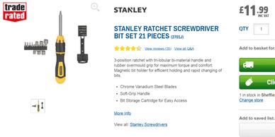 I’ll let you make that decision, but I would certainly remove it and be examining the space behind! This tool is great because it is a ratchet to save your wrist and has loads of different pieces for different screws. £11.99 Screwfix.